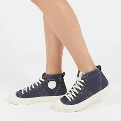 La basket femme ETCHE marine est LA nouveautĂ© de cette saison. Cette basket montante est munie d’une tige bleu marine en coton recyclĂ©. C’est une chaussure lĂ©gère, idĂ©ale pour allier lĂ©gèretĂ©, confort et style. C’est une basket montĂ©e sur une semelle en caoutchouc naturel ce qui lui permet d’ĂŞtre plus flexible et plus souple. Sa semelle intĂ©rieure est amovible ce qui est très pratique si vous souhaitez y placer les vĂ´tres.